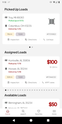 Dive into the all-new user interface with modern design, intuitive cards, and bold colors. Pick up a load right from your home screen or mark them as favorite and visit later!