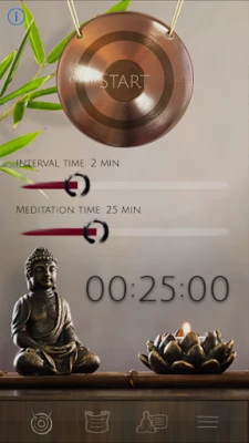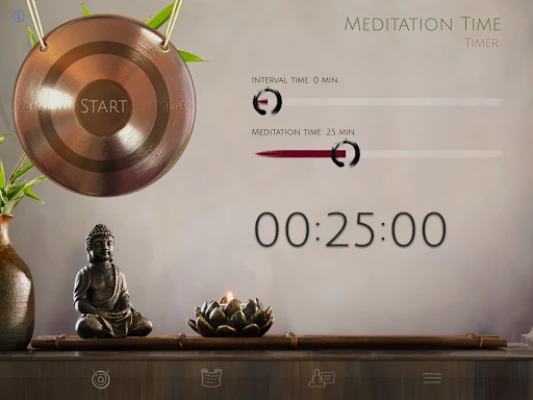 The ‘Meditation Time App’ provides you with a very useful tool to make your meditation even more mindful: Set the timer and let one of the many singing bowls and instruments remind you of the end of your meditation after the desired time.