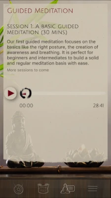 Pleasant nature sounds as switchable background sounds help you meditate when your mind (or your environment) is particularly restless.