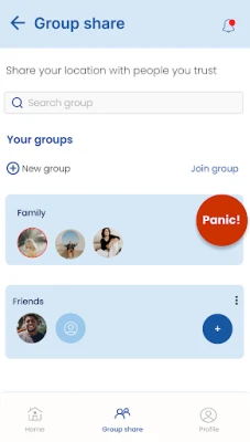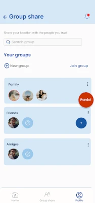 Users are able to create groups to share their their location with people that they trust. The app also allows people to make emergency request by clicking on the panic button.